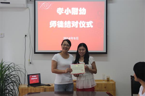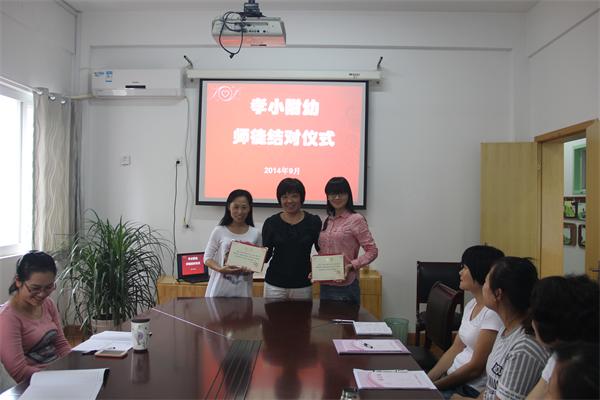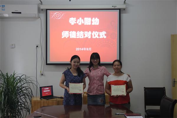 2014年9月25日,在孝小附幼儿会议室举行了师徒三级帮带结对仪式。为了更好的促进幼儿园教师队伍的成长,学校设立了三级帮带制度。首先,一级帮带:园长帮带副园长,主要是从业务、后勤管理方面,帮助业务园长和后勤园长提高管理水平。其次,二级帮带是副园长、区青优帮带骨干教师。两位副园长都是区青优,不仅有帮带教师的义务,而且在业务方面也比较优秀。因此,两位副园长分别帮带了两位年轻骨干教师,一位区青优教师帮带了一位年轻骨干教师,帮带要求要按时听徒弟的课,指导徒弟具体的教育教学工作。第三,骨干教师帮带新教师。今年我园有一名新教师,为了帮助新教师更快的成长,园部选拔了业务优秀、师德过硬、经验丰富的老师对其进行重点指导。结对仪式由业务园长葛琳主持,魏素清园长做了鼓励性的动员,对新教师、年轻的骨干教师提出了殷切的希望,并希望师徒相互学习,一起努力,共同进步。这次三级帮带覆盖率非常大,占全园年轻骨干教师的三分之二,极大激发了教师成长的积极性,形成了互帮互助的积极氛围。