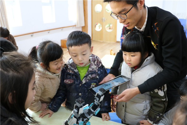 孝小附幼家长进课堂,智能机器人与孩子们亲密接触