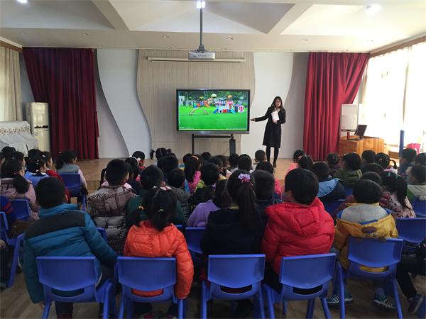 本次活动邀请的朱老师,是南京理工大学实验小学一年级的班主任。她先以动画形象和一首欢快的《上学歌》,吸引孩子们的注意力,拉开了介绍小学生活的序幕。在接下来的时间里,朱老师以直观的图片、生动的讲解,分别向孩子们介绍了小学与幼儿园在校园环境设施、作息时间、学习生活等内容和形式的不同,让孩子们了解小学优美的环境、完备的设施,多种多样的课程和丰富多彩的课余活动。孩子们个个睁大了眼睛,听得非常认真,还时不时发出欢呼与惊叹,表达自己渴望成为一名小学生的迫切心情。最后的互动交流环节,孩子们纷纷向朱老师提出自己关心的问题,朱老师一一给予耐心地解答,同时鼓励孩子们抓紧在幼儿园的最后一学期,努力养成良好的生活习惯和学习习惯,为迈入小学做好充足的准备。