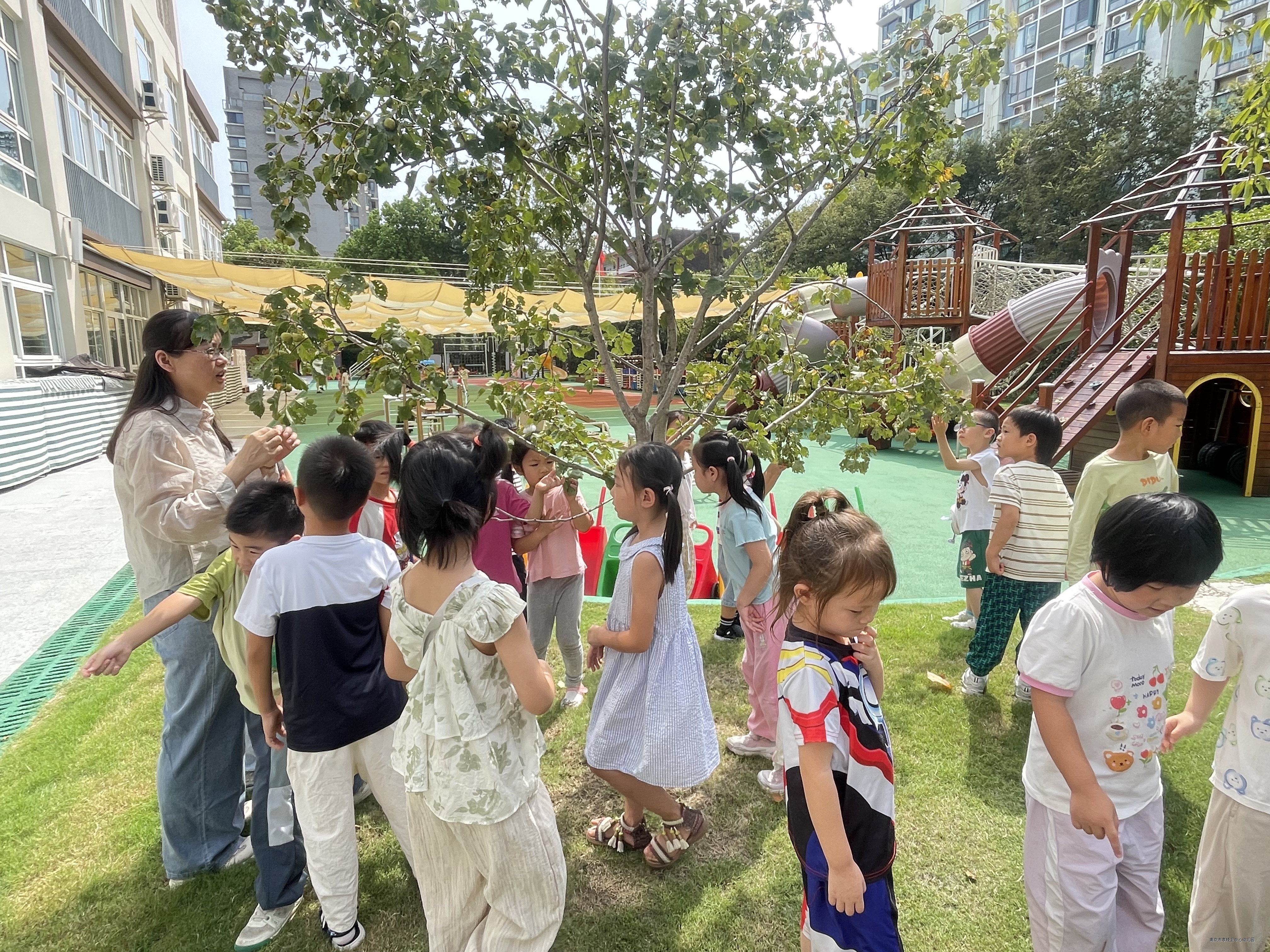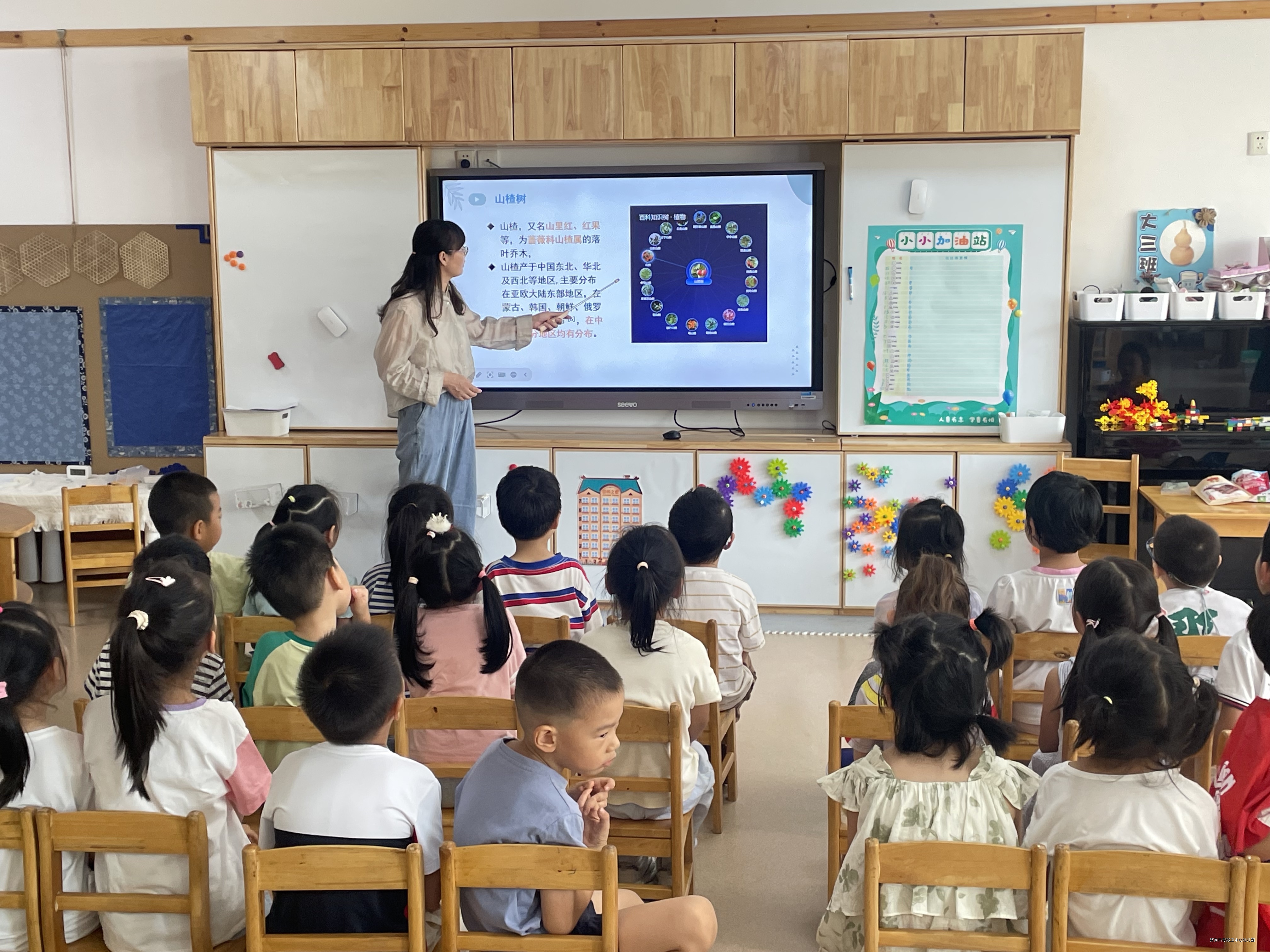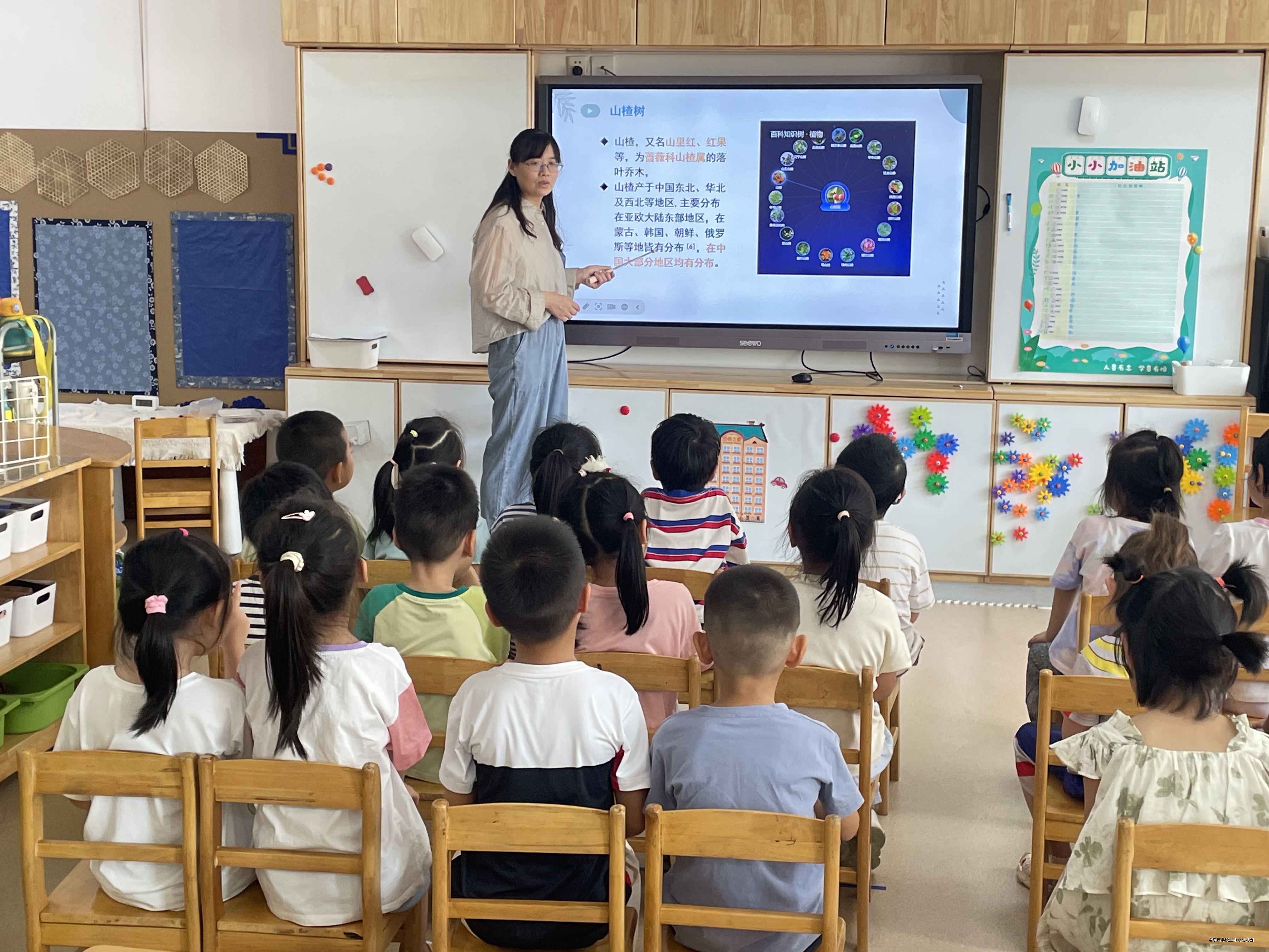 本学期的家长进课堂活动邀请了应书怡的妈妈。应书怡的妈妈在农科院工作,对农业方面非常了解。在幼儿发现园内的山楂树结果了,对山楂树产生兴趣后,应书怡的妈妈带来了山楂树的相关知识,让小朋友们对山楂树生长习性有了更多了解。最后大家一起去观察了山楂树,应书怡妈妈也对山楂树的果实和叶子做了进一步介绍。