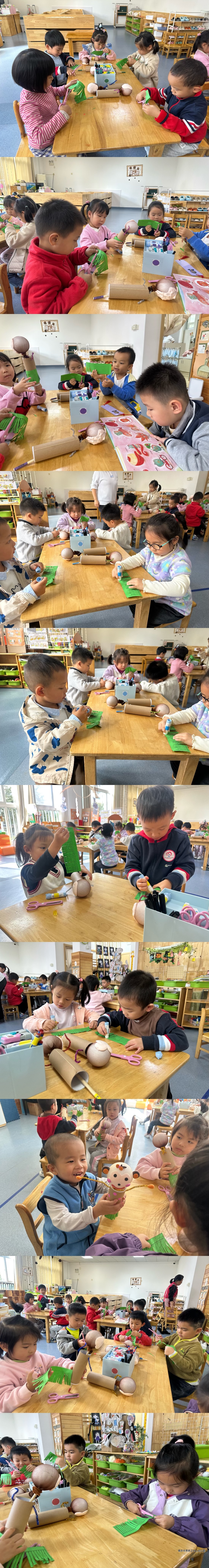 剪好草裙,大家蘸一点胶棒在猴子身体两侧,小心翼翼把 “草裙” 贴上,小手轻轻按了又按,生怕它 “跑掉”。最后抓起黏土,捏成小圆点、小花瓣,甚至还有小爱心,一点点粘在草裙上,边粘边笑:“我的猴子要穿最漂亮的裙子!” 不一会儿,一个个穿着花草裙的猴子杖偶就做好了,小朋友们举着杖偶晃来晃去,别提多开心啦!