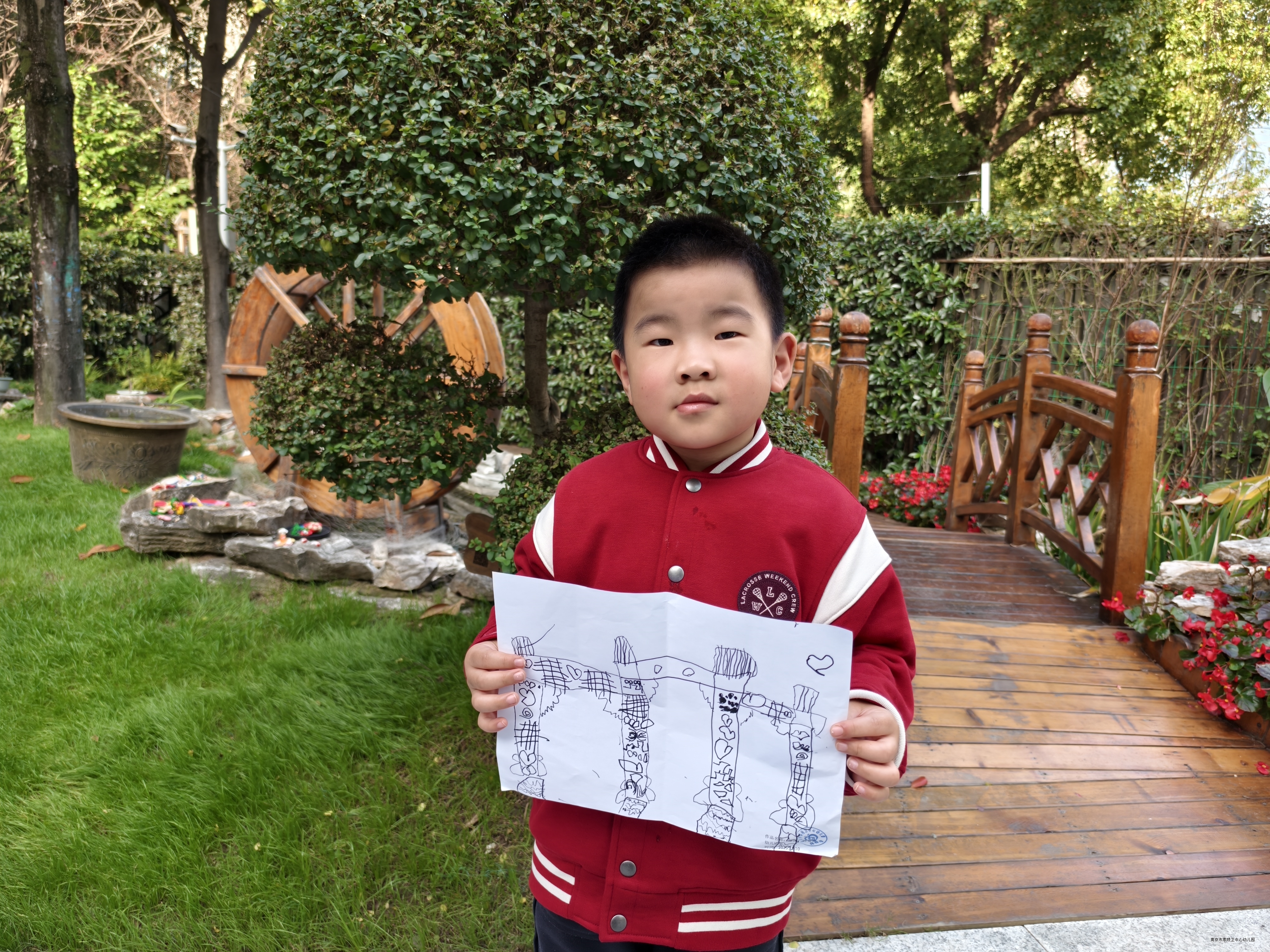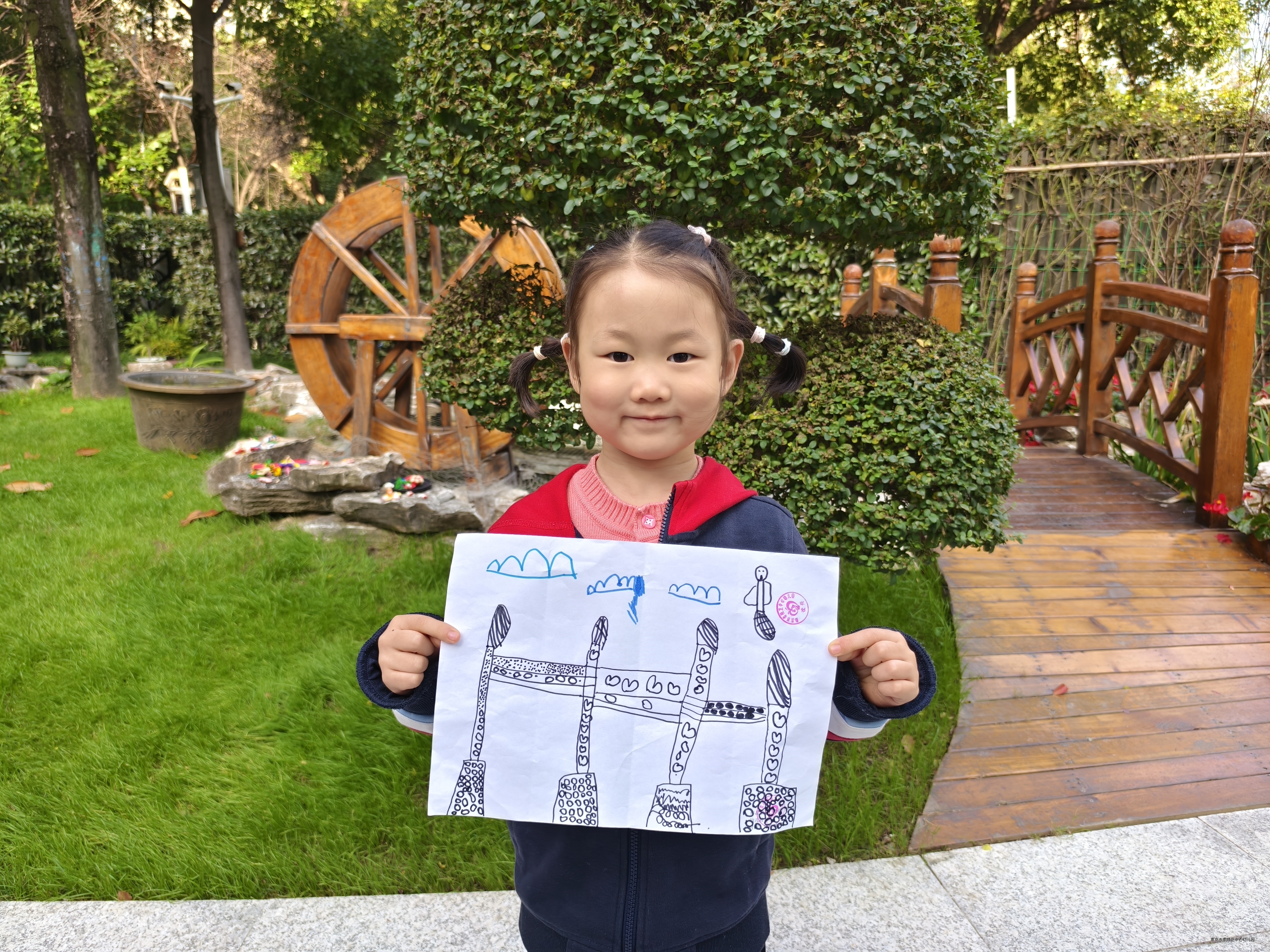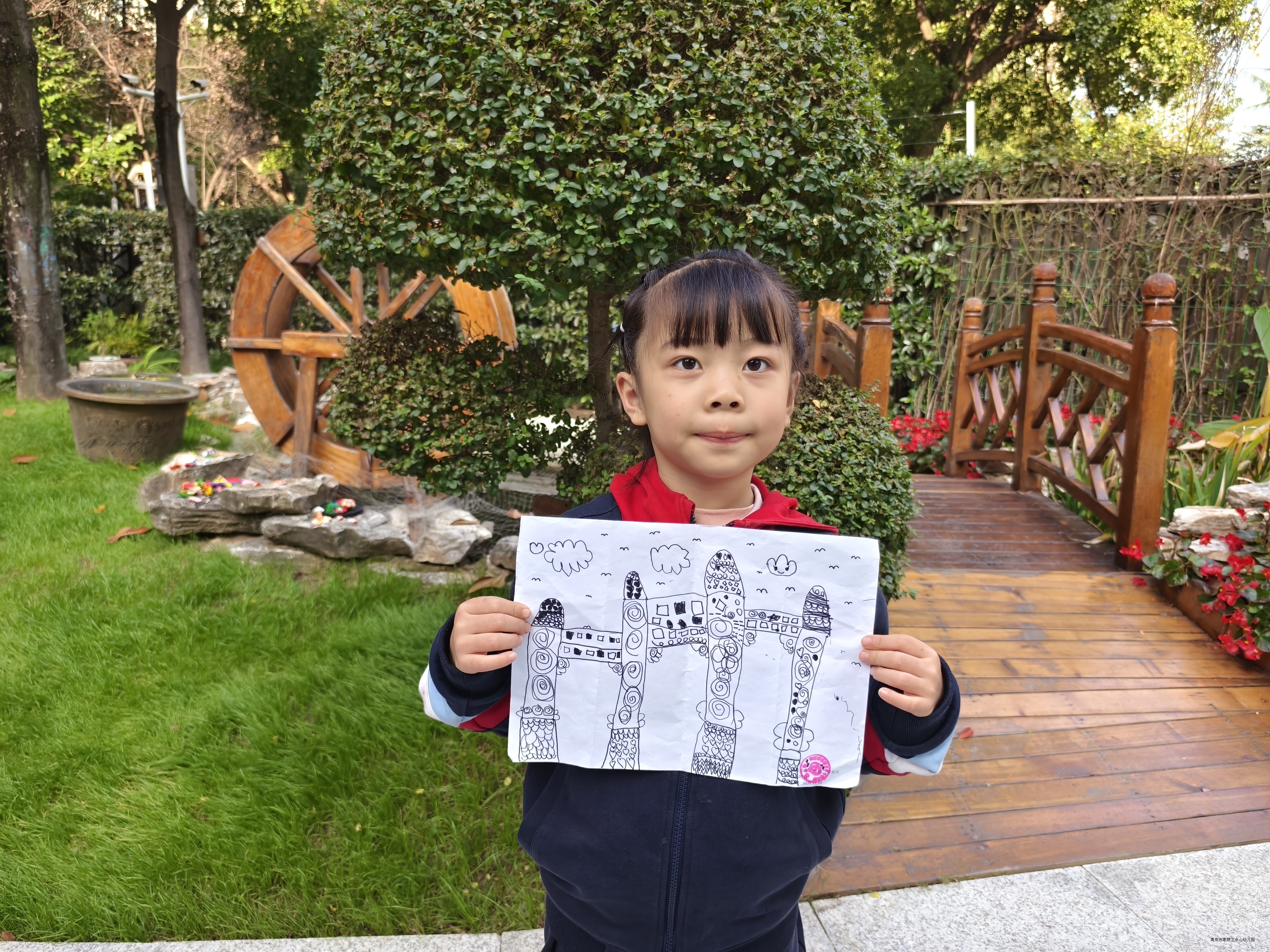 我们正在开展“中山陵”的主题,瞧,这是我们绘画的博爱坊,多么好看呀!