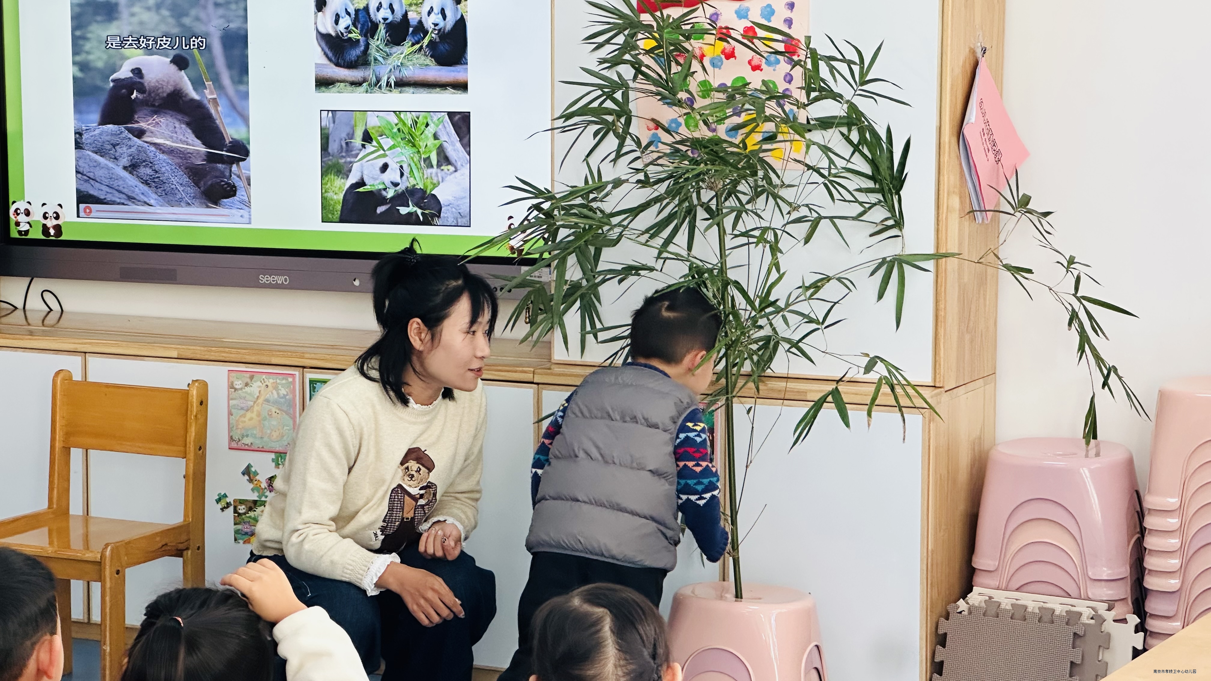 2025年11月11日,小一班家长进课堂活动,我们的好朋友张晋显的妈妈带来有关大熊猫的科学小知识来跟我们分享,我们先是玩了一个游戏热身,接着我们根据图片中的影子和谜语猜出了今天的神秘客人——大熊猫。