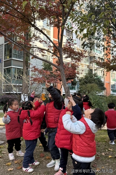 我们在小区里看到了高高的大树、矮矮的小草,还有奇特的棕榈树,发现了黄色的马褂叶、银杏叶,红色的枫叶。